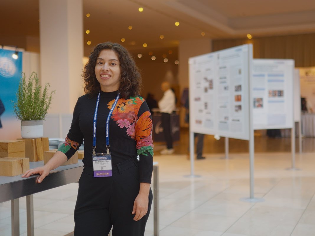 Dra. Jesús Díaz en presentación de pósteres de investigación.