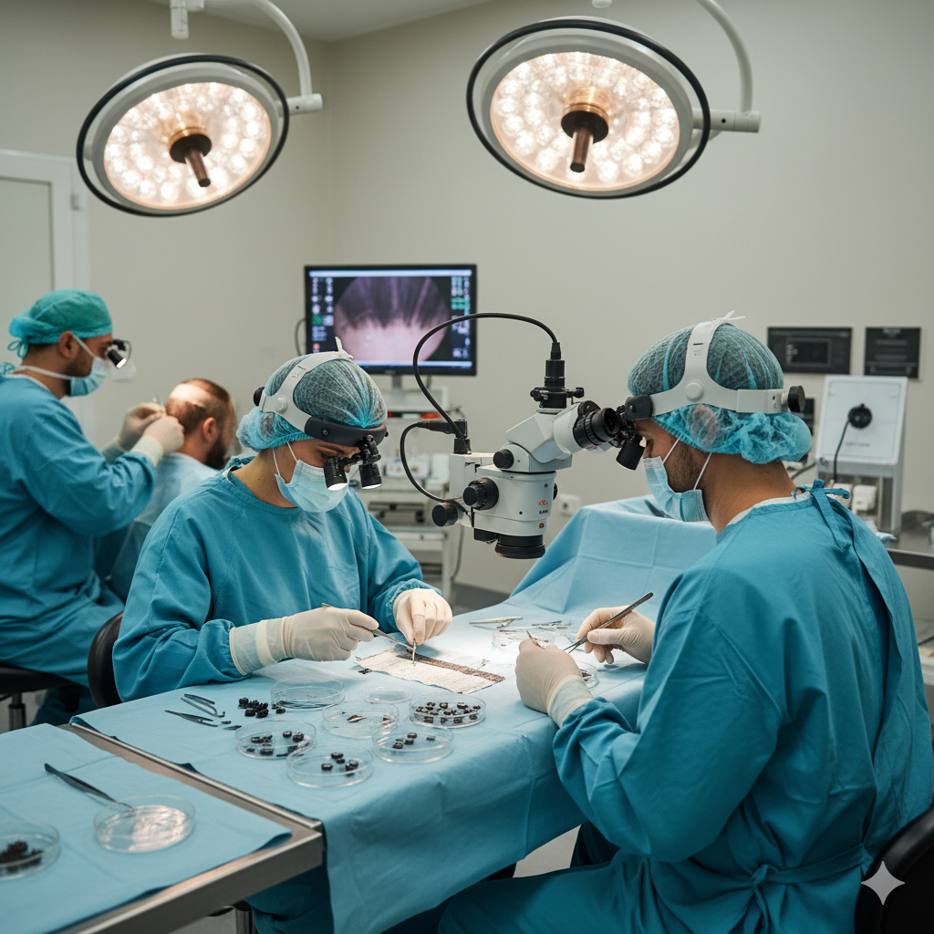 De esta tira, los folículos se separan individualmente bajo un microscopio de alta resolución, lo que permite aprovechar prácticamente el 100% de los injertos disponibles. Posteriormente, las unidades foliculares se trasplantan una a una en la zona calva, logrando una implantación natural de cabellos definitivos.