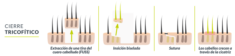 Uno de los temores más comunes respecto a esta técnica está relacionado con la cicatriz resultante. Sin embargo, actualmente se utiliza un método avanzado llamado cierre tricofítico, que consiste en realizar el corte de la piel en un ángulo oblicuo. Esto permite empalmar y suturar los bordes de la herida de manera precisa, generando una cicatriz extremadamente delgada y prácticamente imperceptible si el cabello tiene una longitud superior a 1 cm.